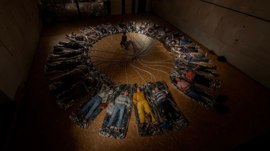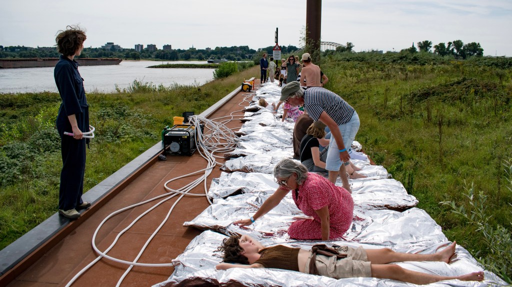 Annabel Schouten and Gemma Luz Bosch have developed an acoustic immersive installation for their co-created concerts, in which the audience listens while lying down. The audience is invited on the artwork. Baden is a minimalist, personal and intimate concert that prompts you to slow down, be still and experience your own body. During the concert you can listen to a composition of whispering flutes, driving rhythms and fragile voices. The surfaces sings as your body gently descends.