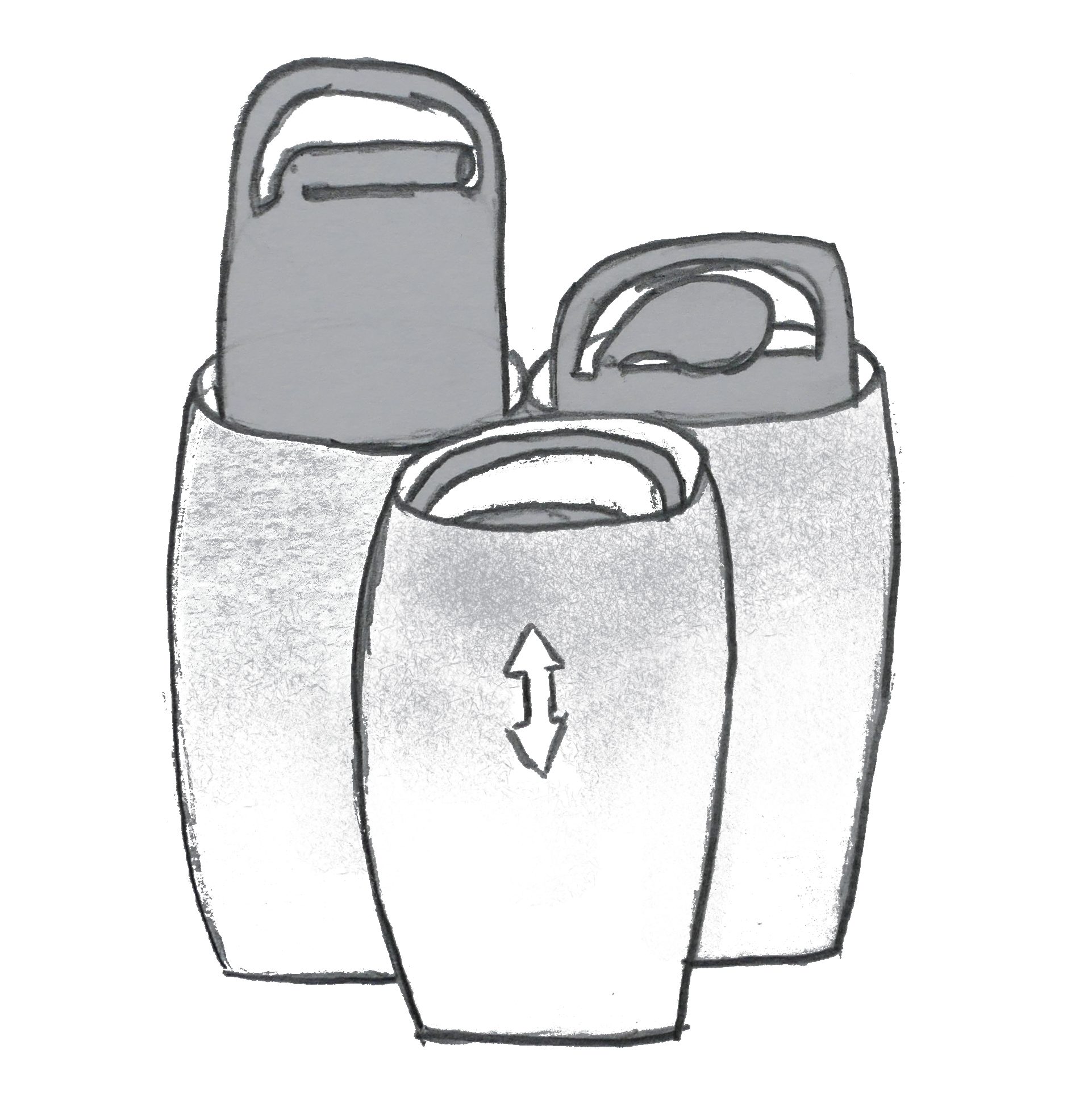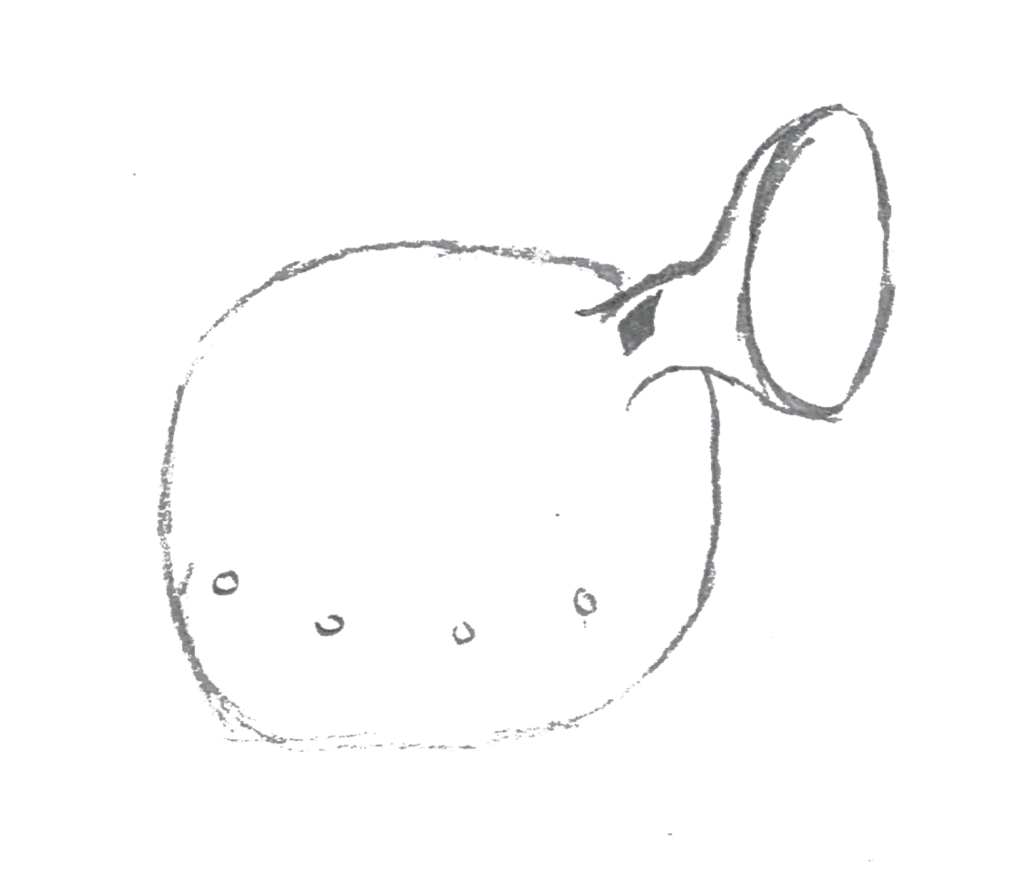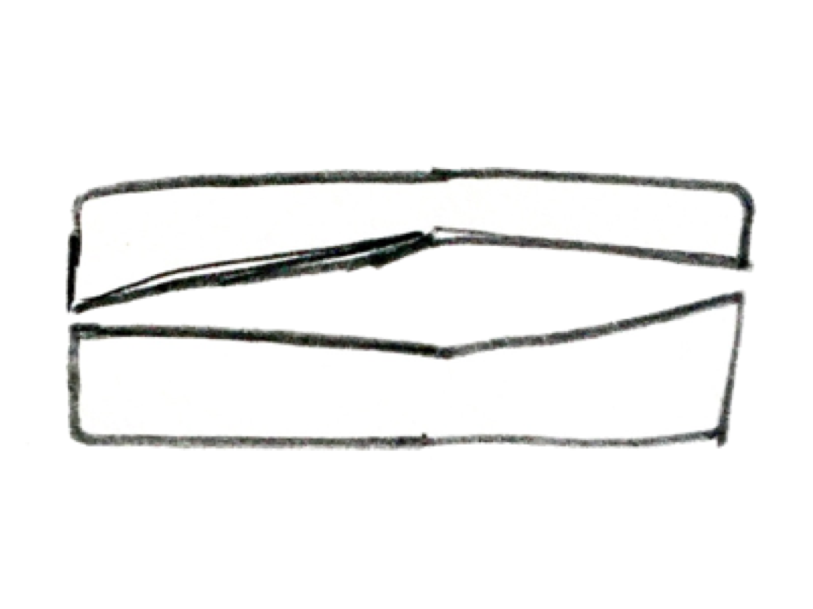 Hieronder een experiment waarin ik twee fluiten bij hun mondstuk aan elkaar heb gemaakt. Ik hoopte dat de ene fluit klinkt als je blaast en de andere als je zuigt. Ik heb het gemaakt en het werkte niet. Achteraf snap ik ook waarom; het belangrijkste van een fluit is het mondstuk. Dit moet altijd van groot naar klein gaan zodat de lucht zich concentreert in een heel dun randje waar de lucht splijt. Als het mondstuk, zoals in de tekening hieronder, van klein naar groot naar klein gaat kan je nog zo hard blazen, maar je zal nooit genoeg luchtdruk kunnen produceren om hem “goed/hard” te laten klinken, omdat de ingang en de uitgang even groot zijn. Je krijgt wel een beetje klank.