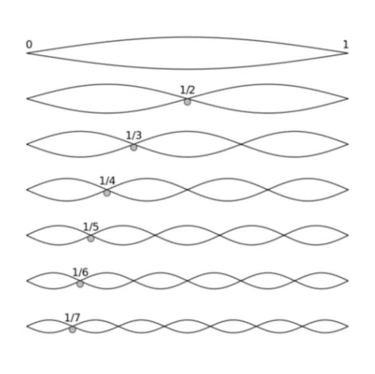 De frequenties van de fluiten zijn niet willekeurig. Voor de stemming van de fluiten ga ik de natuurlijke boventoonreeks gebruiken.